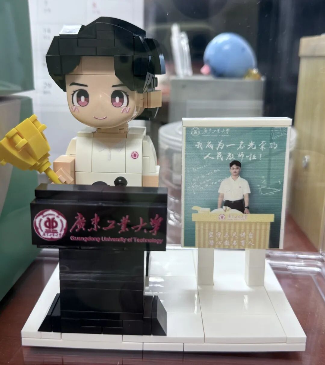 回想起2024年9月份的教师节宣誓环节,到如今捧着专属模型积木,才真切读懂其重量。今年教师节恰逢迎新周,我陀螺式连轴转,忙到嗓子嘶哑趴在桌角。学生们悄悄送来暖黄包装的白玫瑰、贴了 “老师少说话” 的润喉糖和温奶茶,贺卡满是 “您歇会儿”。这一年,从应对事务的手足无措到从容,从敬畏身份到感受双向联结,我在学生的温暖里,慢慢长成更有担当的自己。