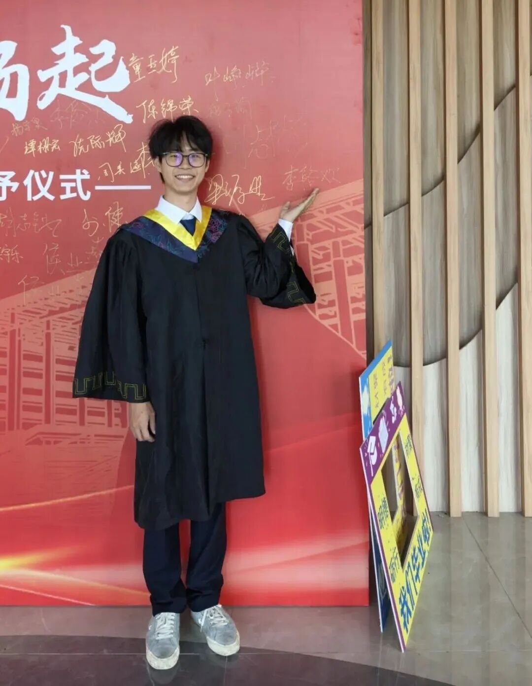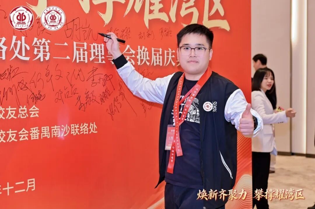 我想为这张照片起个标题:“我的广工精神家园”。“一朝广工人,一世广工情”,时光飞逝,眨眼间阔别母校三年。但曾经的青春记忆,校园的美好风景,饭堂的各种美食以及课堂上老师的耐心教导等场景仍留在我脑海里。在毕业那年,我有幸加入了2022届电子科学与技术4班校友联络员。这是因为,我希望将广工精神传承下来,烙印在脑海里。也契机利用校友会搭建起母校和校友之间沟通的桥梁,并建立资源共享,为广工的发展贡献我们的力量。在这次番禺南沙校友会换届仪式上,我也参加了志愿者活动,领略了会长,理事,秘书团的师兄师姐的风采,让我为之触动。总的来说,广工校友会让我永远一个念想,也对应着校友会所说的那句“亲爱的校友,常回家看看”!